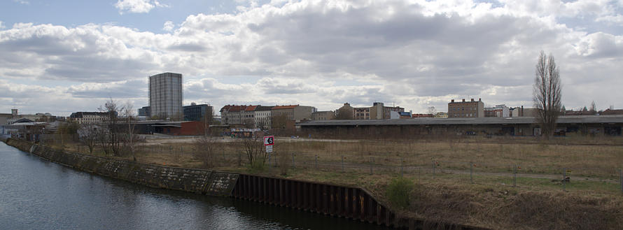 9. 4. 2012. Berlin. Mitte. Blick vom Kieler Ufer über den Berlin-Spandauer-Schifffahrtskanal zum Gebiet an der Heidestraße.