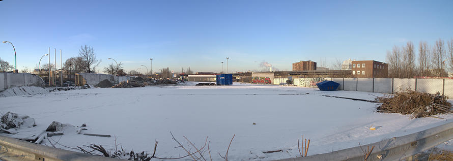 7. 12. 2012. Berlin. Mitte. Moabit. Heidestraße. Geräumte Brachfläche. Winter. Schnee