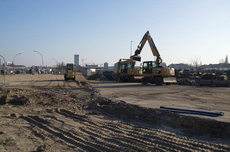 25. 2. 2014. Berlin. Mitte. Moabit. Baustelle Eurocity an der Heidestraße. Bagger