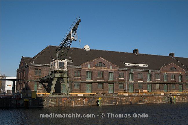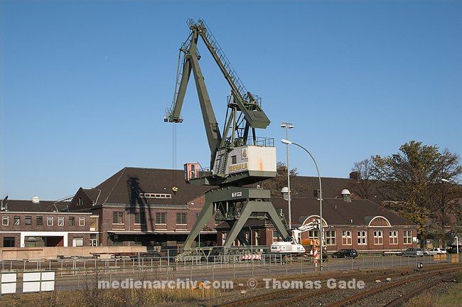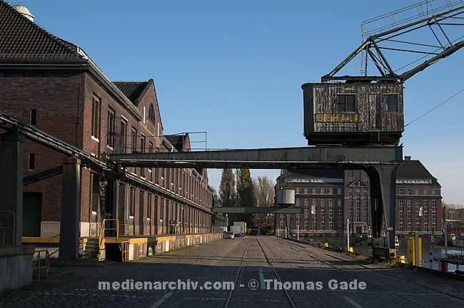 7. 11. 2005. Berlin. Tiergarten. Moabit. Westhafen. BEHALA. Binnenschiffahrt. Kran am Kai