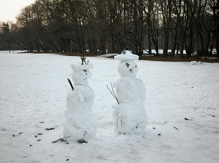 Februar 2003. Berlin. Wedding. Mitte. Winter. Der Park Rehberge ist verschneit. Schnee. Schneemann