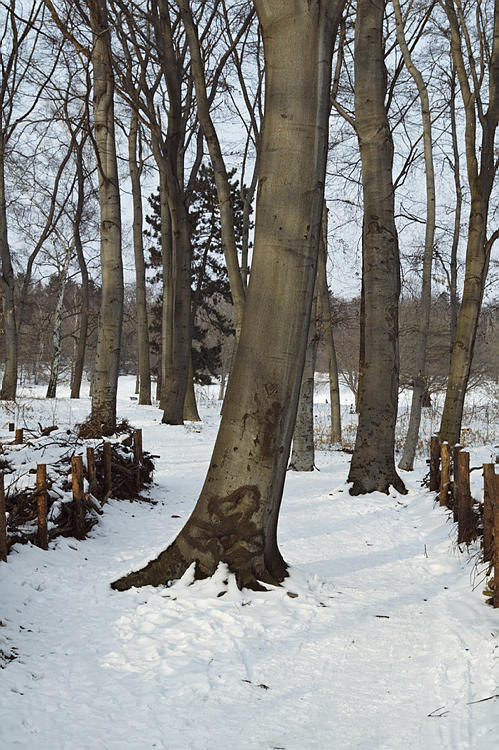 5. 3. 2005. Berlin. Mitte. Wedding. Park Rehberge. Winter. Schnee. Rodelbahn. Buchenwald