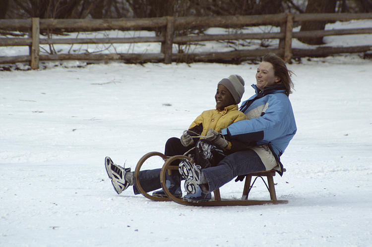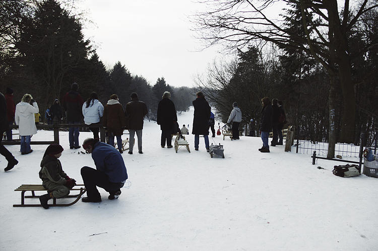 5. 3. 2005. Berlin. Mitte. Wedding. Park Rehberge. Winter. Schnee. Rodelbahn. Schlittenfahren.