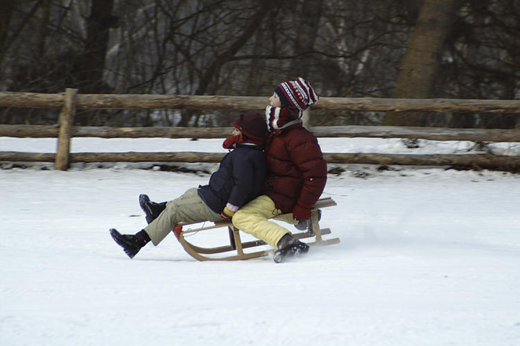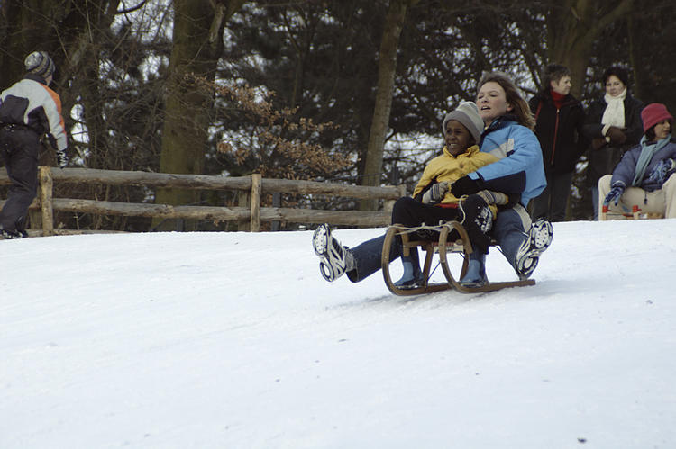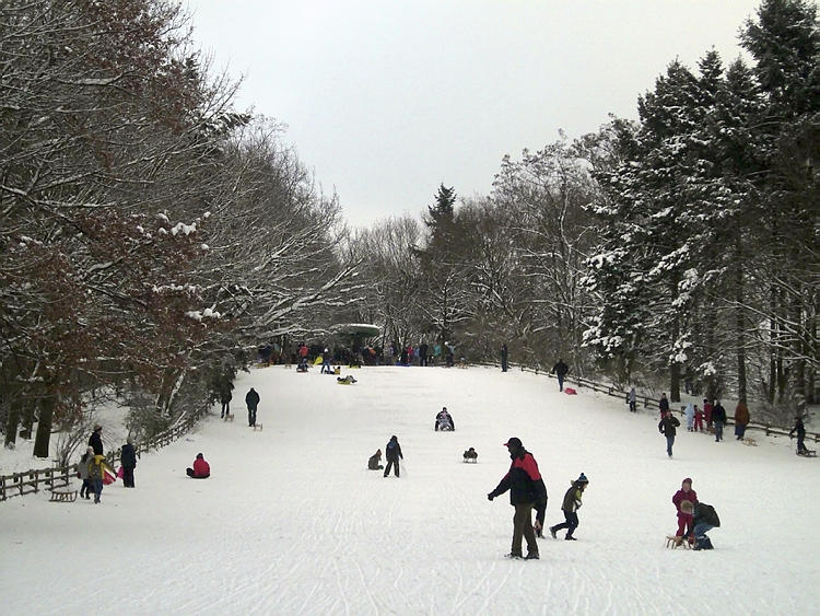 1. 1. 2010. Berlin. Mitte. Wedding. Park Rehberge. Es liegt viel Schnee. Winter. Rodeln. Schlittenfahren.