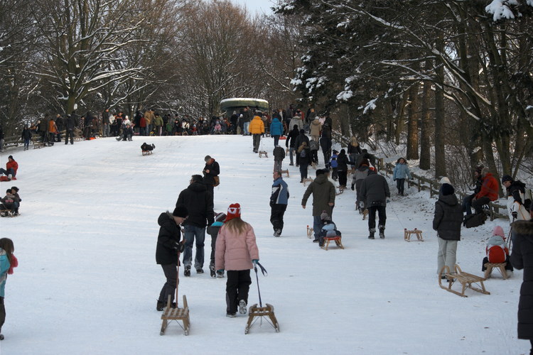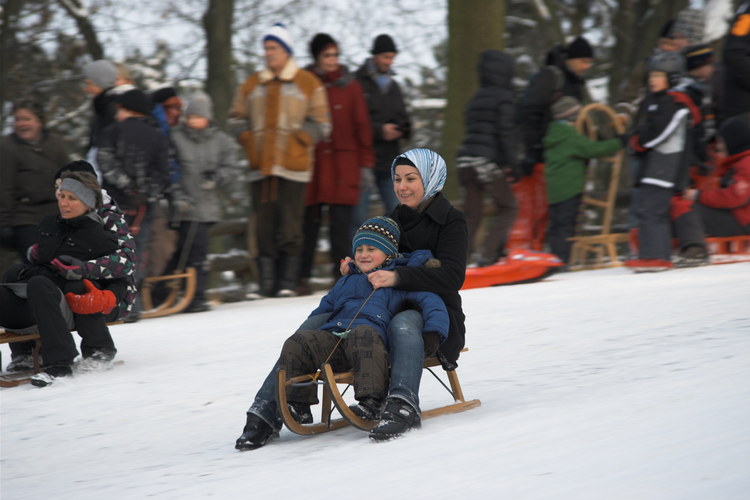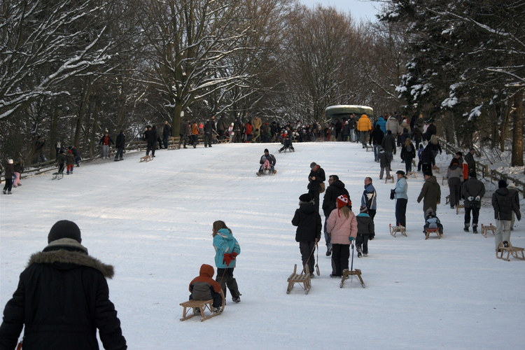 3. 1. 2010. Berlin. Mitte. Wedding. Park Rehberge. Rodeln. Schlittenfahren. Schnee.