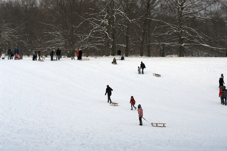 3. 1. 2010. Berlin. Mitte. Wedding. Park Rehberge. Rodeln. Schlittenfahren. Schnee.