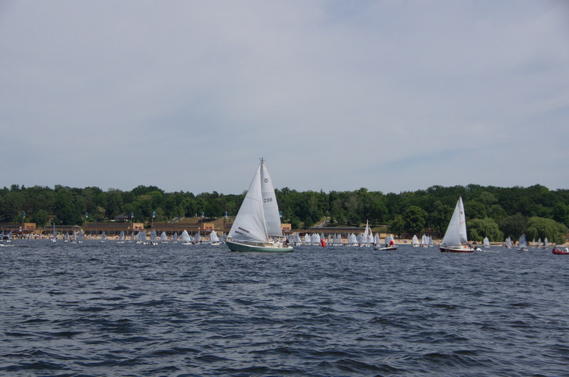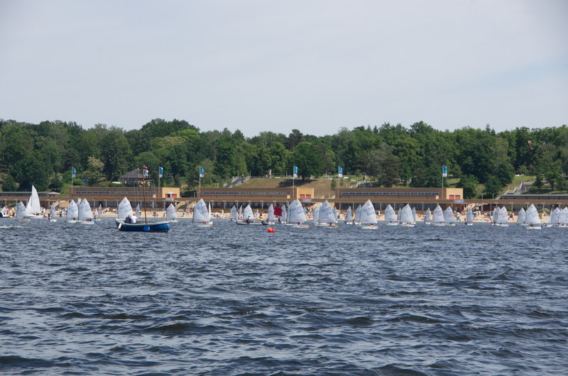 26. 5. 2012. Berlin. Zehlendorf. Segelboote auf dem Wannsee. Hinten: Strandbad Wannsee. Schwimmbad. segeln