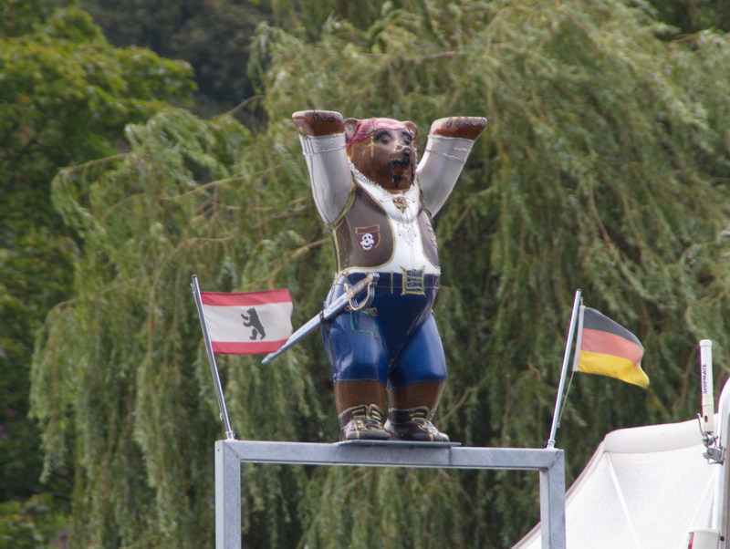 23. 8. 2011. Berlin. Zehlendorf. Wannsee. Kleiner Buddy Bär als Pirat bei einem Yachthafen