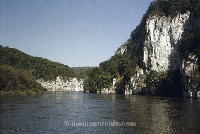 1980. Deutschland. Regensburg. Felsen am Fluss Donau