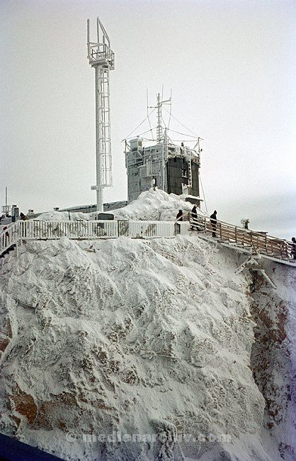 um 1968. Bayern. Zugspitze. Alpen. Berge. Schnee. Gipfelkreuz