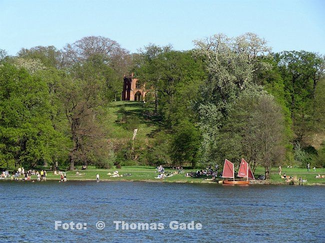 28. 4. 2012. Brandenburg. Potsdam. Babelsberg. Park. Tiefer See. Uferwiesen. Badeanstalt. Flatowturm