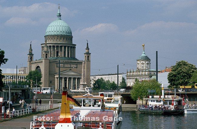 Mai 1995. Brandenburg. Dampfer in Potsdam. Nikolaikirche