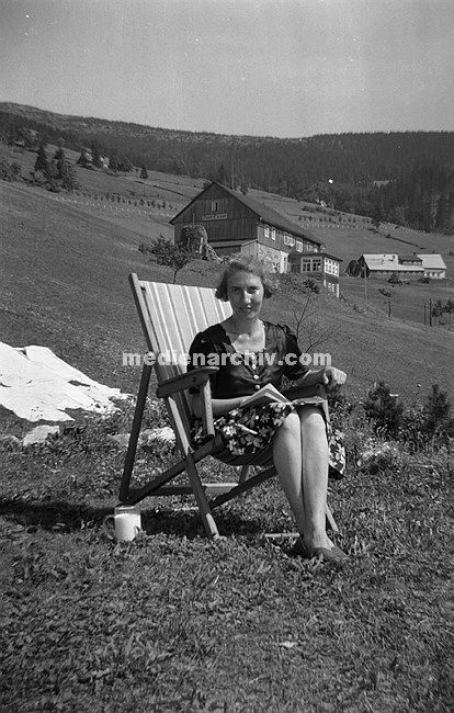 um 1938. vermutlich Bayern. Haus Enzian. Frau im Liegestuhl.