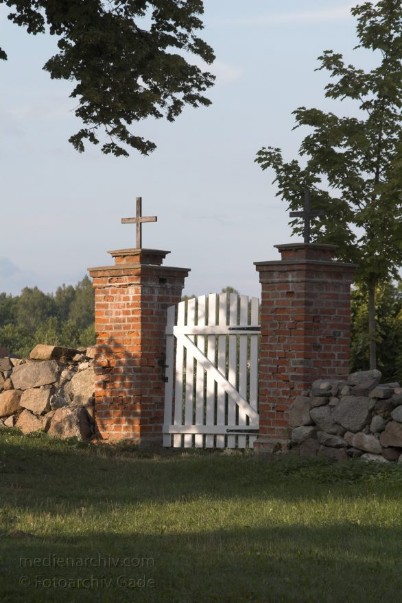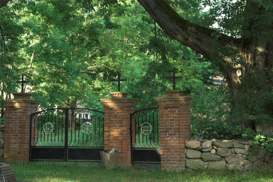 14.8 2006. Mecklenburg-Vorpommern. Feldberger Seenlandschaft. Carwitz. Pforte an der Kirche