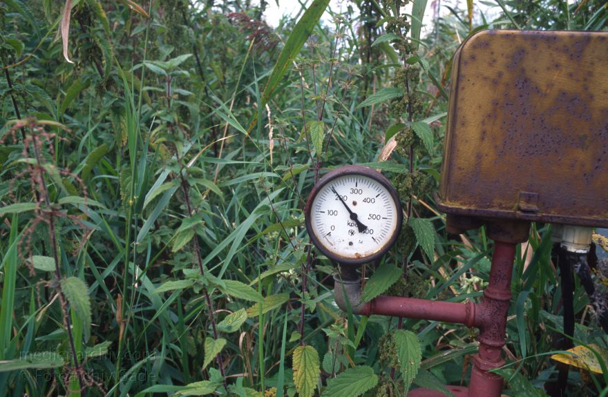 September 1996. Mecklenburg-Vorpommern. Feldberger Seenlandschaft. Carwitz. Druckmesser einer Wasserpumpanlage