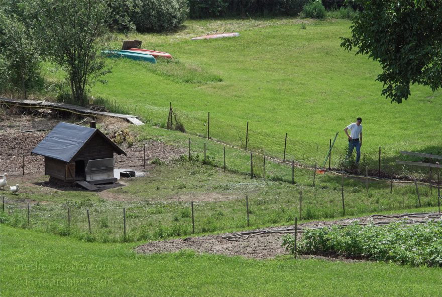 24. 6. 2007. Mecklenburg-Vorpommern. Feldberger Seenlandschaft. Carwitz. Jörg Stadler an einem Entengehege.