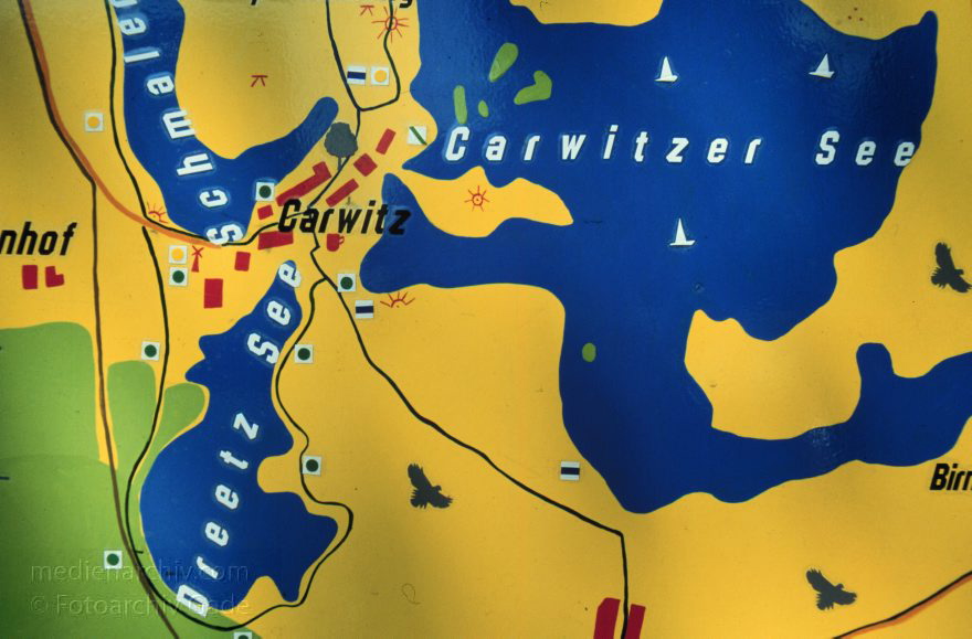 September 1999. Deutschland. Mecklenburg-Vorpommern. Feldberger Seenlandschaft. Gebietskarte von Carwitz