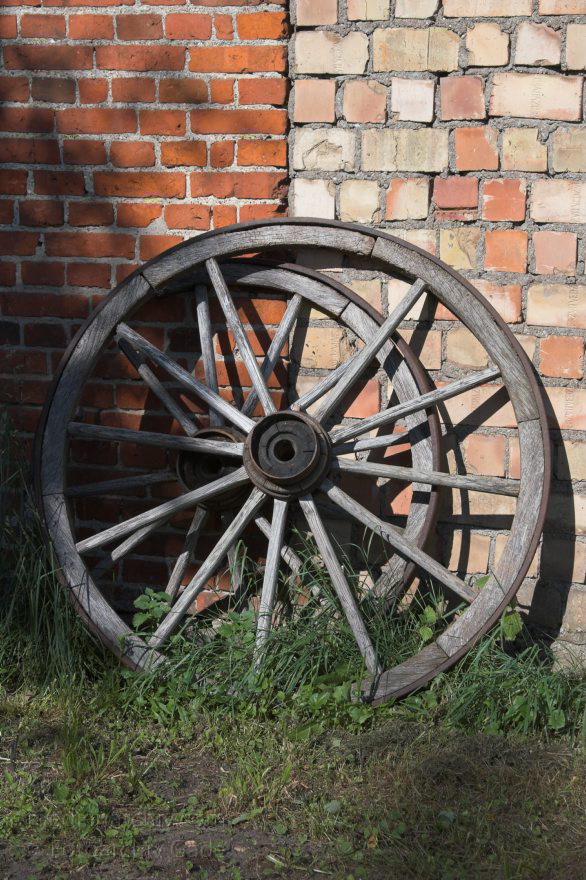 20. Juni 2005. Mecklenburg-Vorpommern. Carwitz. Altes hölzernes Wagenrad