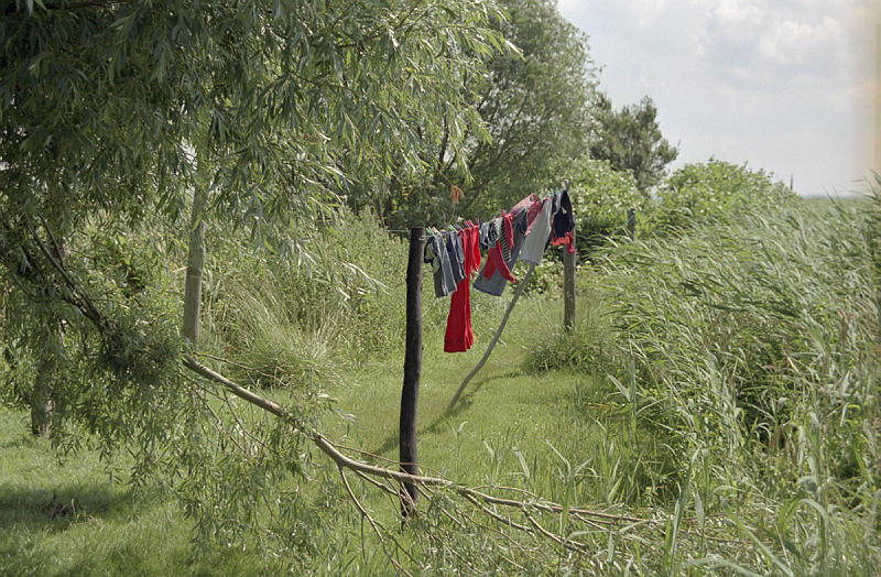 Juli 2001. Mecklenburg-Vorpommern. Fischland. Darß. Ahrenshoop. Wäsche auf der Leine