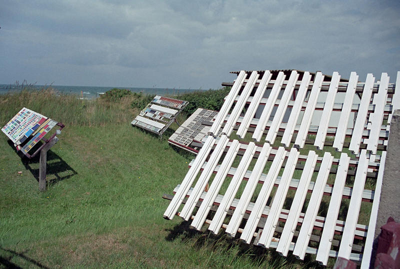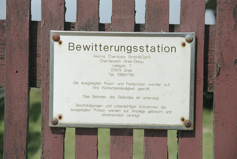Juli 2001. Mecklenburg-Vorpommern. Fischland. Ostseeküste. Bewitterungsstation. Teststation für Lacke und Farben