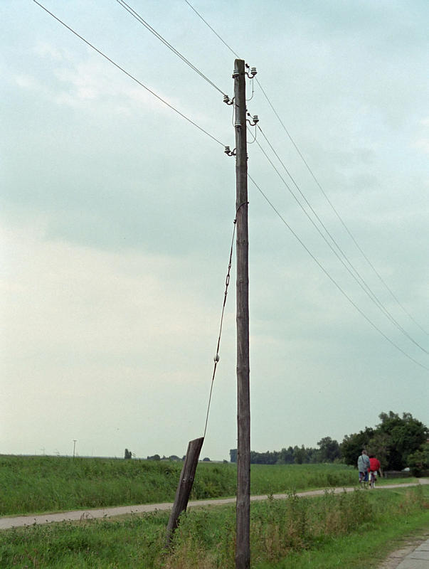 Juli 2001. Mecklenburg-Vorpommern. Fischland. Deich Strommast.