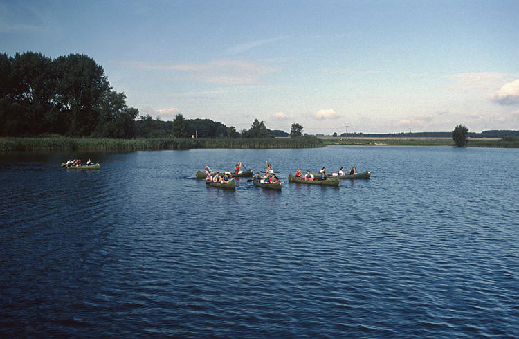 30. 8. 1994. Mecklenburg-Vorpommern. Mecklenburger Seenplatte. Müritzsee. Kanus. Paddler. Wasserwandern