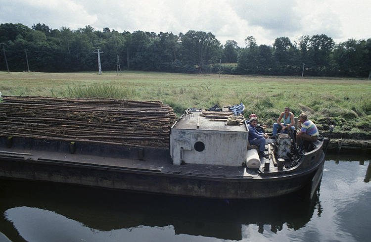 30. 8. 1994. Dampferfahrt von Röbel nach Rheinsberg. Binnenschiff mit Holz