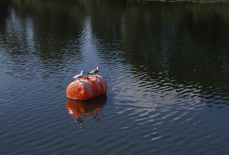 30. 8. 1994. Dampferfahrt von Röbel nach Rheinsberg. Möwen auf einer roten Boje