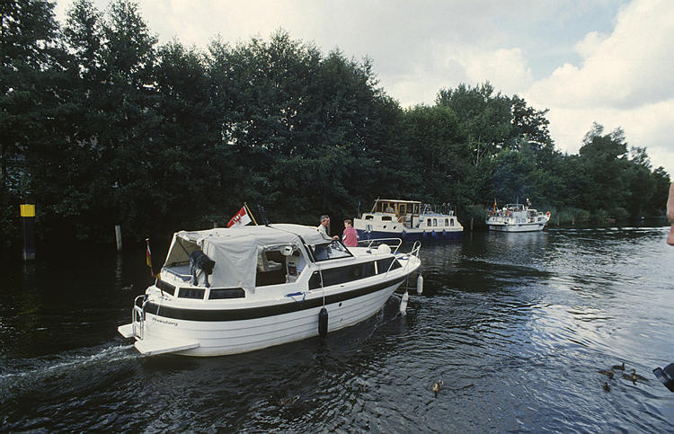 30. 8. 1994. Mecklenburg-Vorpommern. Mecklenburger Seenplatte. Motorboote