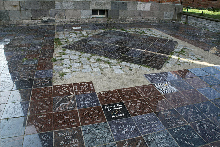 26. 9. 2009. Mecklenburg-Vorpommern. Insel Rügen. Kap Arcona. Steinfliesen mit den Namen von getrauten Ehepaaren. Hochzeit.