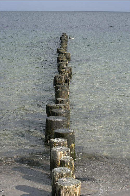 27. 9. 2009. Mecklenburg-Vorpommern. Insel Rügen. Sellin. Ostsee. Möwen auf Steinen. Meer