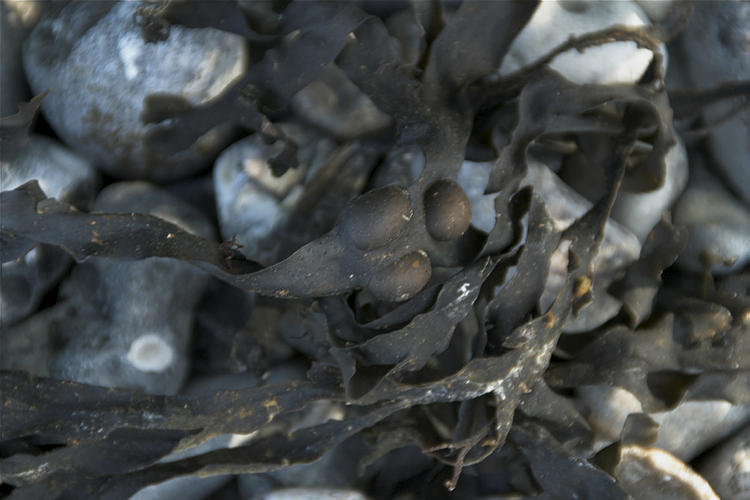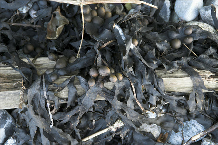 25. 9. 2009. Mecklenburg-Vorpommern. Insel Rügen. Lome. Seetang auf dem steinigen Strand. Ostsee. Meer