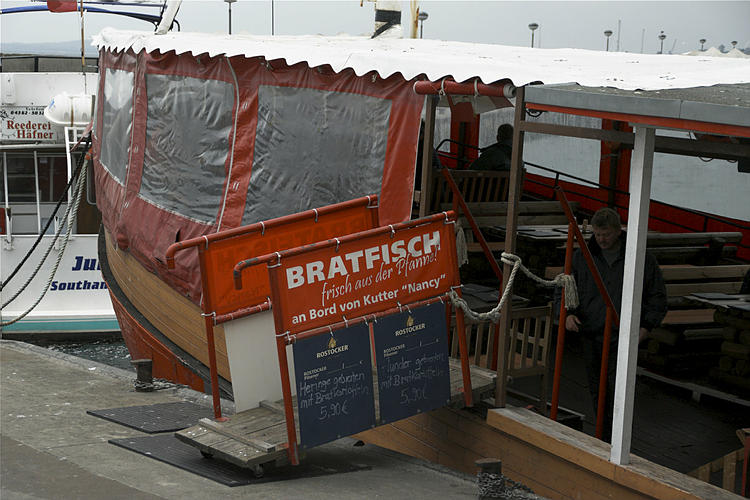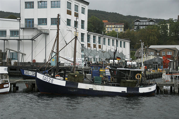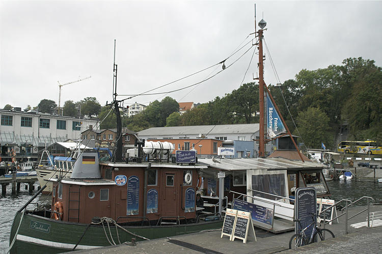 28. 9. 2009. Mecklenburg-Vorpommern. Insel Rügen. Sassnitz. Fischereihafen. Ostsee. Küste. Schiffe. Fischkutter. Restaurant