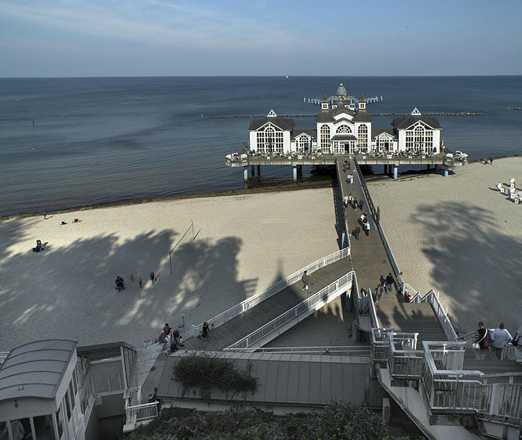 27. 9. 2009. Mecklenburg-Vorpommern. Insel Rügen. Sellin. Seebrücke. Strand. Ostsee. Meer. (Panorama aus mehreren Einzelaufnahmen)