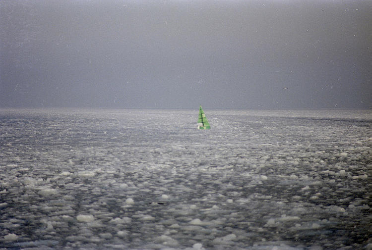 Januar 1982. Schleswig-Holstein. Flensburg. Winter. Zugefrorene Ostsee. Schiffe. Schifffahrt