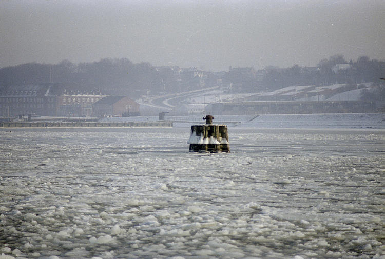 Januar 1982. Schleswig-Holstein. Flensburg. Winter. Zugefrorene Ostsee