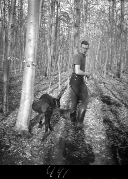 1939. Deutschland. Stuttgart bei Geutzke's. Haus und Hund im Wald