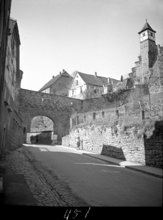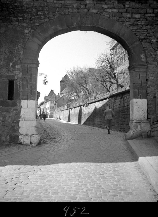1939. Deutschland. Wimpfen. Strasse und Torbogen