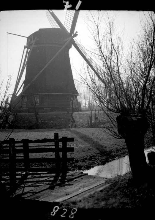 1940. Niederlande. Slootje Mühlensilhouette