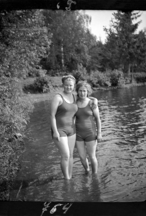 1940. Östereich. Flatschach. Loisie und Gerti. Zwei Frauen im Badeanzug