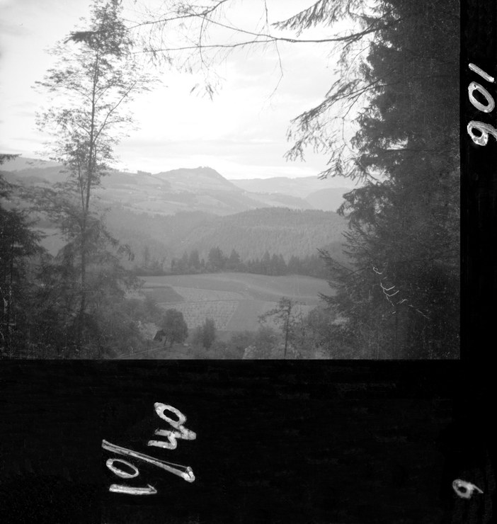 1940. Österreich. bei Himmelberg. Einfahren Hochern. Stiefel bei Himmelberg. Blick von Saurauchberg auf Ulrichberg