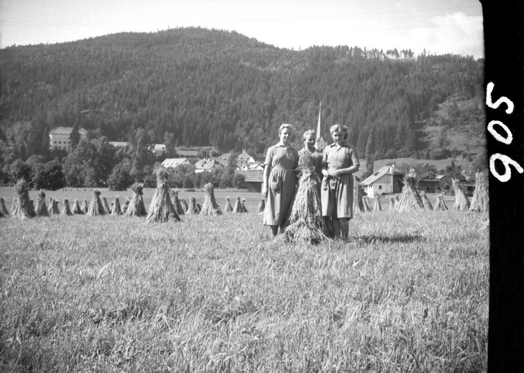 1940. Österreich. bei Himmelberg. Einfahren Hochern. Stiefel bei Himmelberg. Dora. Martha. Christl Weigant vor Himmelburg