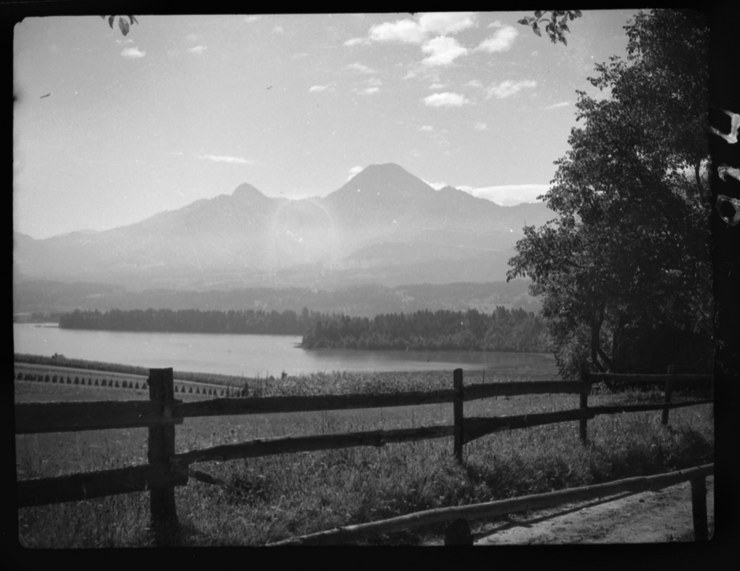 1940. Österreich. Villach und Faak. Fahrt nach Villach und Faak mit Christl. Eisci VI,Wegrand und Faakersee und Mittagskogel