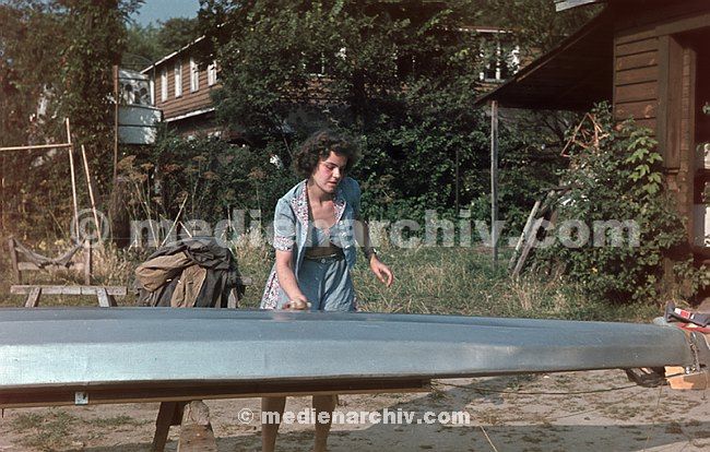 1943. Berlin. Frau mit Faltboot.