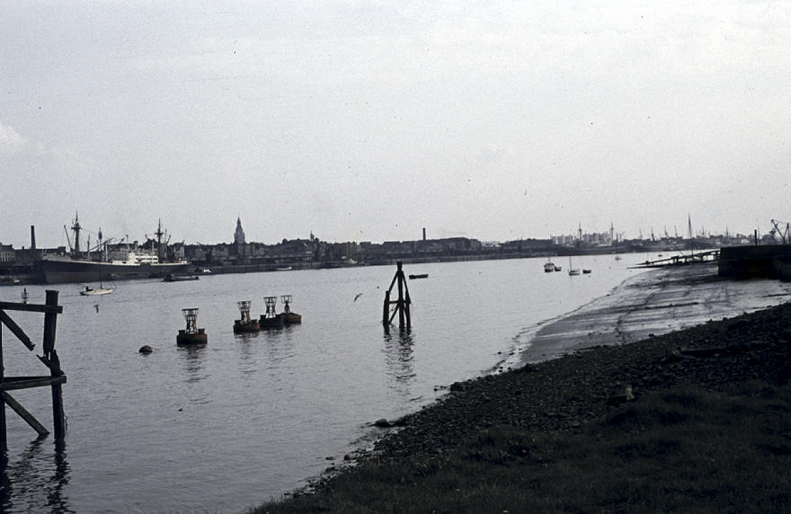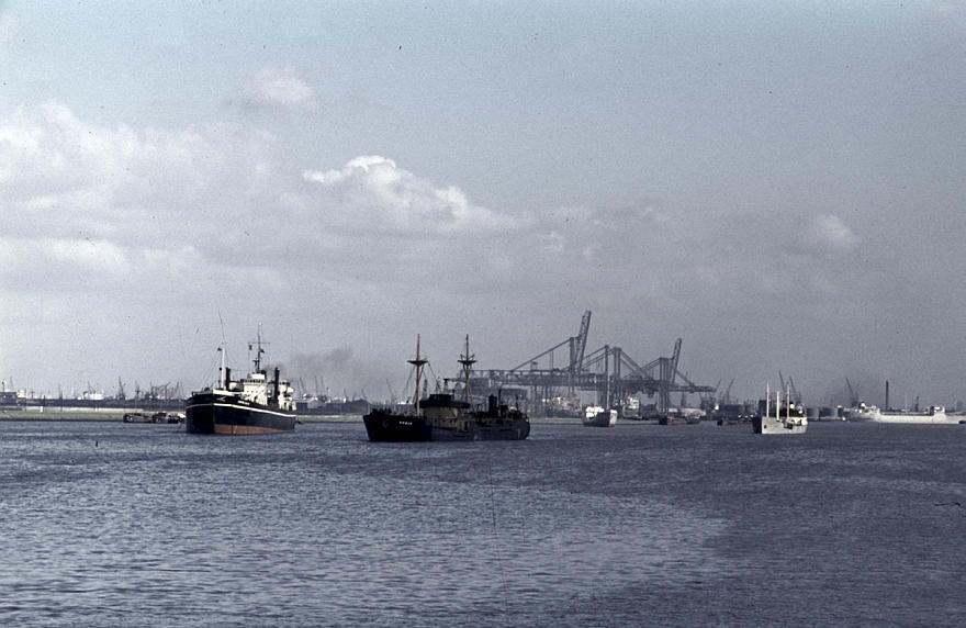 1957. Belgien. Antwerpen. Fluss Schelde. Hafen. Schiffe. Schifffahrt