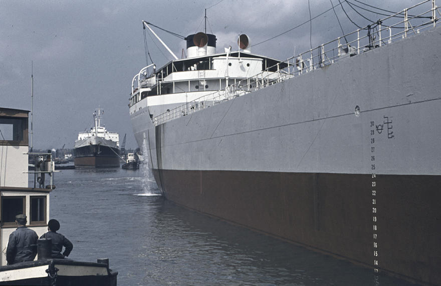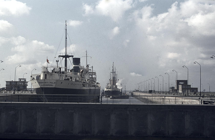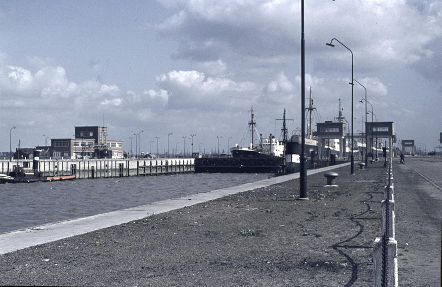 1957. Belgien. Antwerpen. Fluss Schelde. Hafen. Schiffe. Schifffahrt. Schleuse