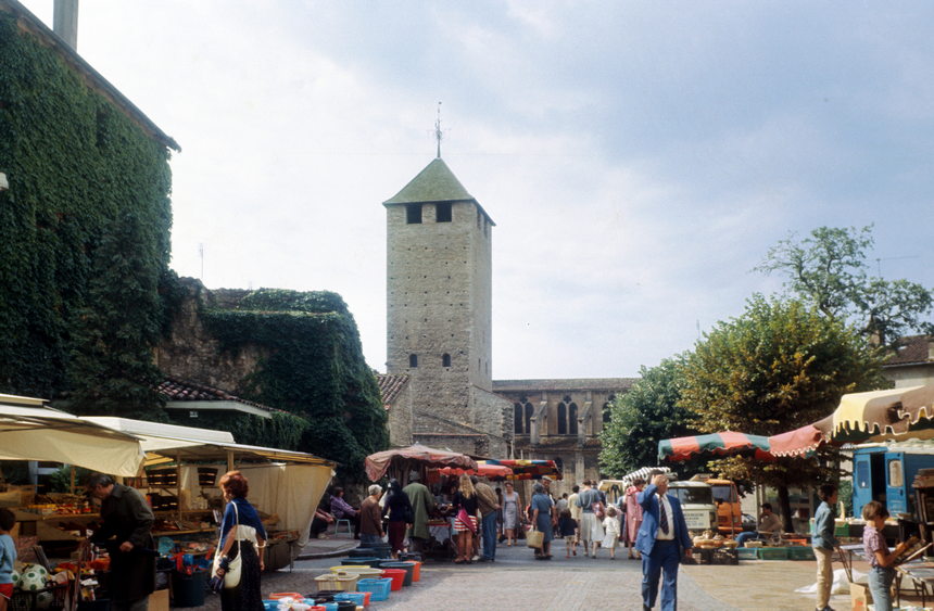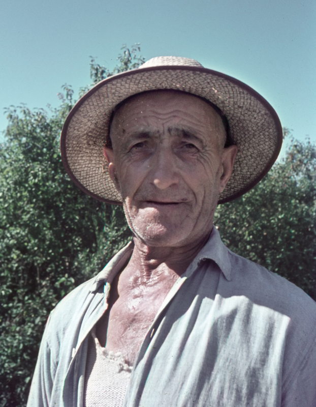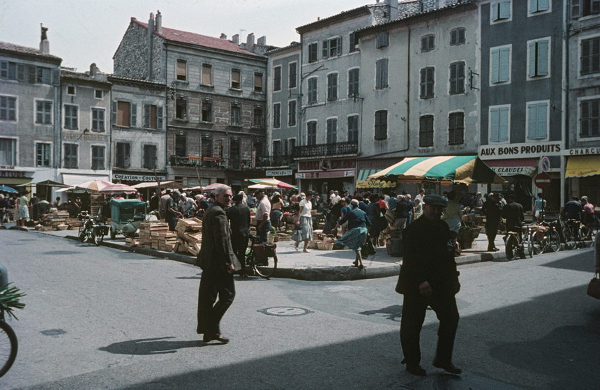 um 1960. Frankreich. Korbverkäufer mit einem Straßenstand