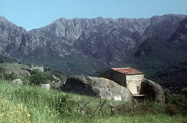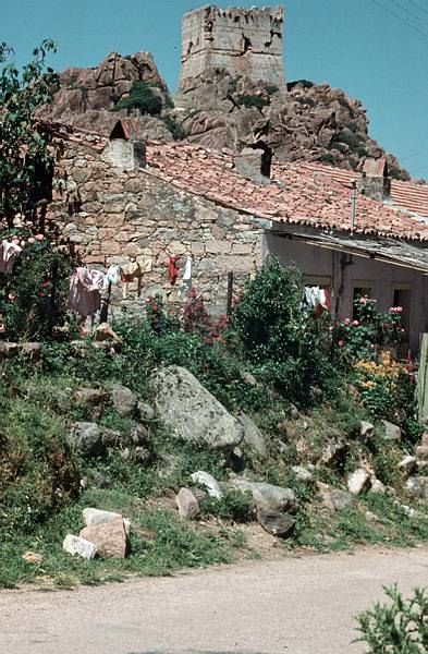 1958. Frankreich. Korsika. Haus zwischen Felsen.
