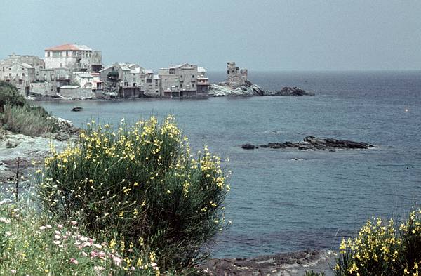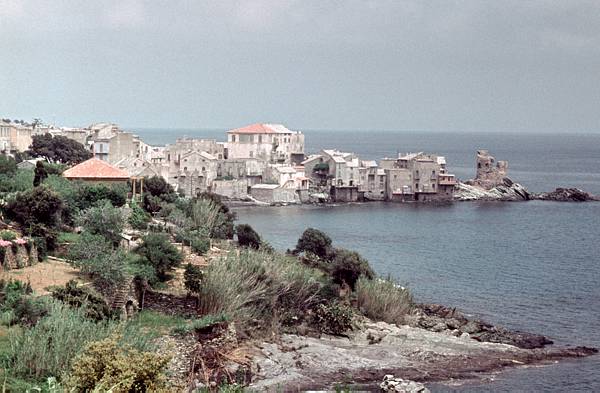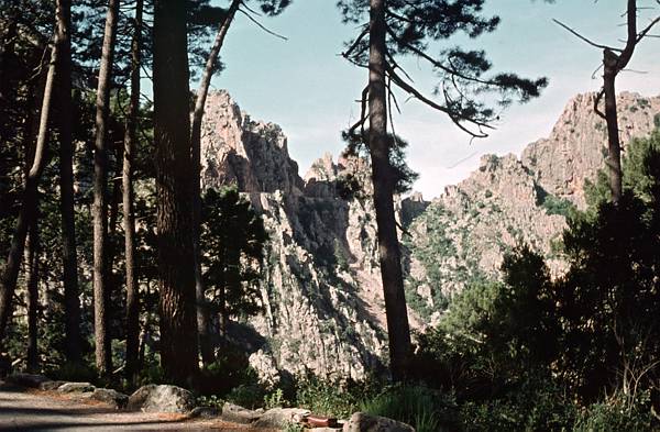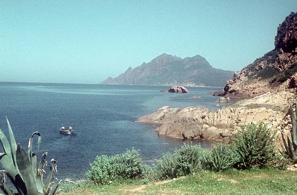 1958. Frankreich. Korsika. Durchblick an der Calandie.