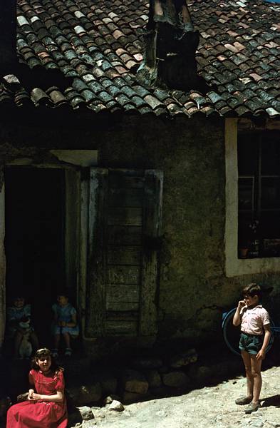1958. Frankreich. Korsika. Kinder vor korsikischem Haus.